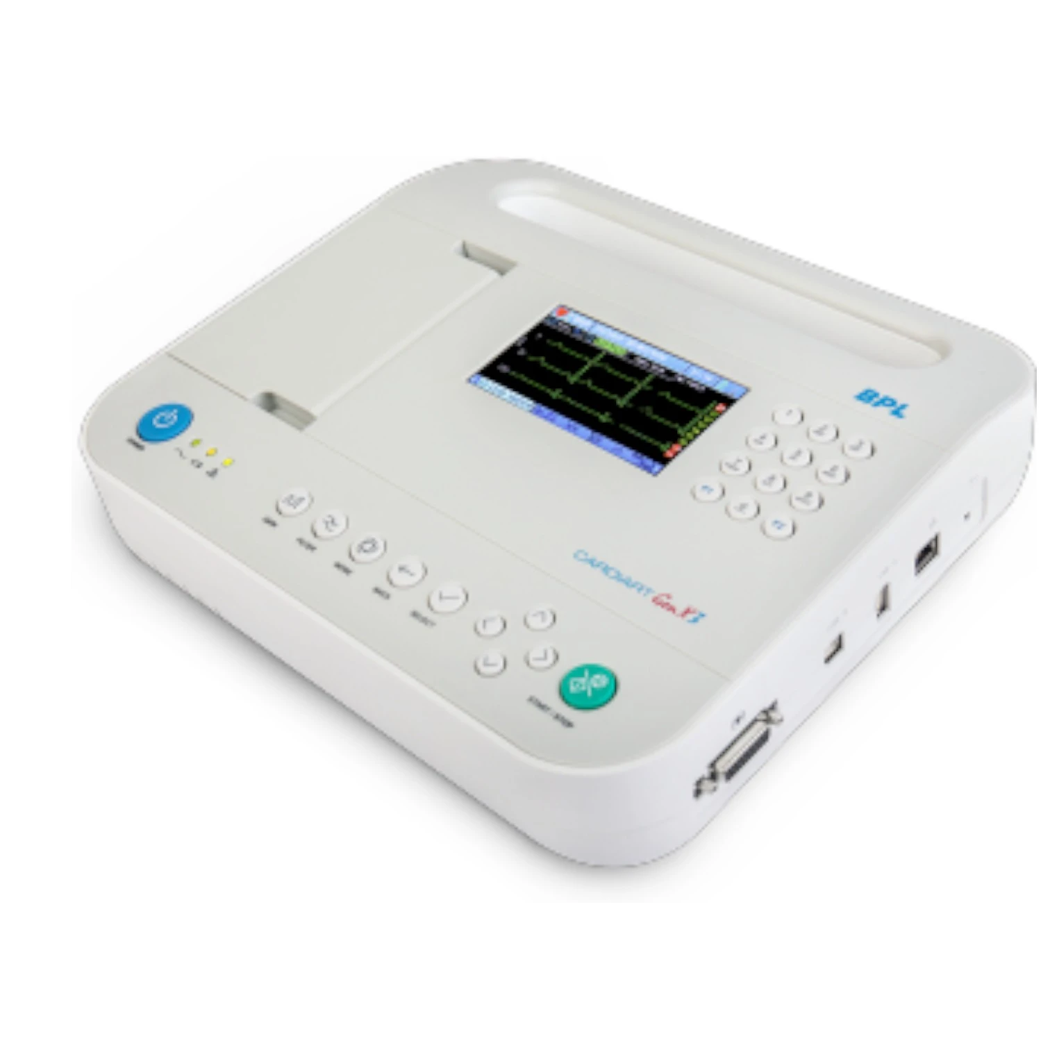 • Three Channel ECG Recording with trace darkness control • 4.3-inch color LCD screen • Glasgow ECG Interpretation Algorithm • Alphanumeric keypad with soft silicone keys • Full disclosure view of ECG analysis on display • Internal storage 250 ECGs and can be enlarged by USB • Li-ion rechargeable battery – 250 ECG’s • Optional - PC interface software for Real-time ECG View, HL7 output, FTP feature |
