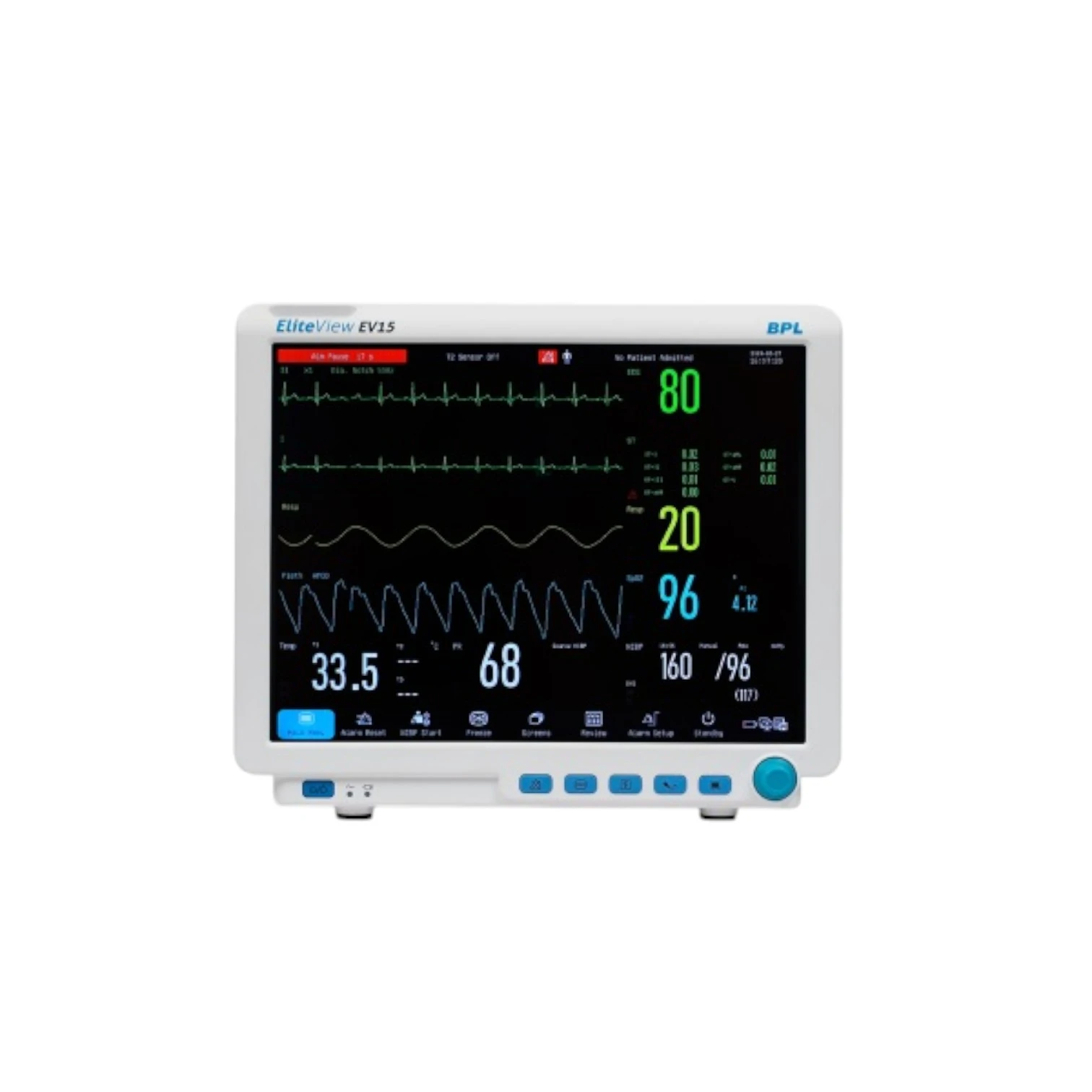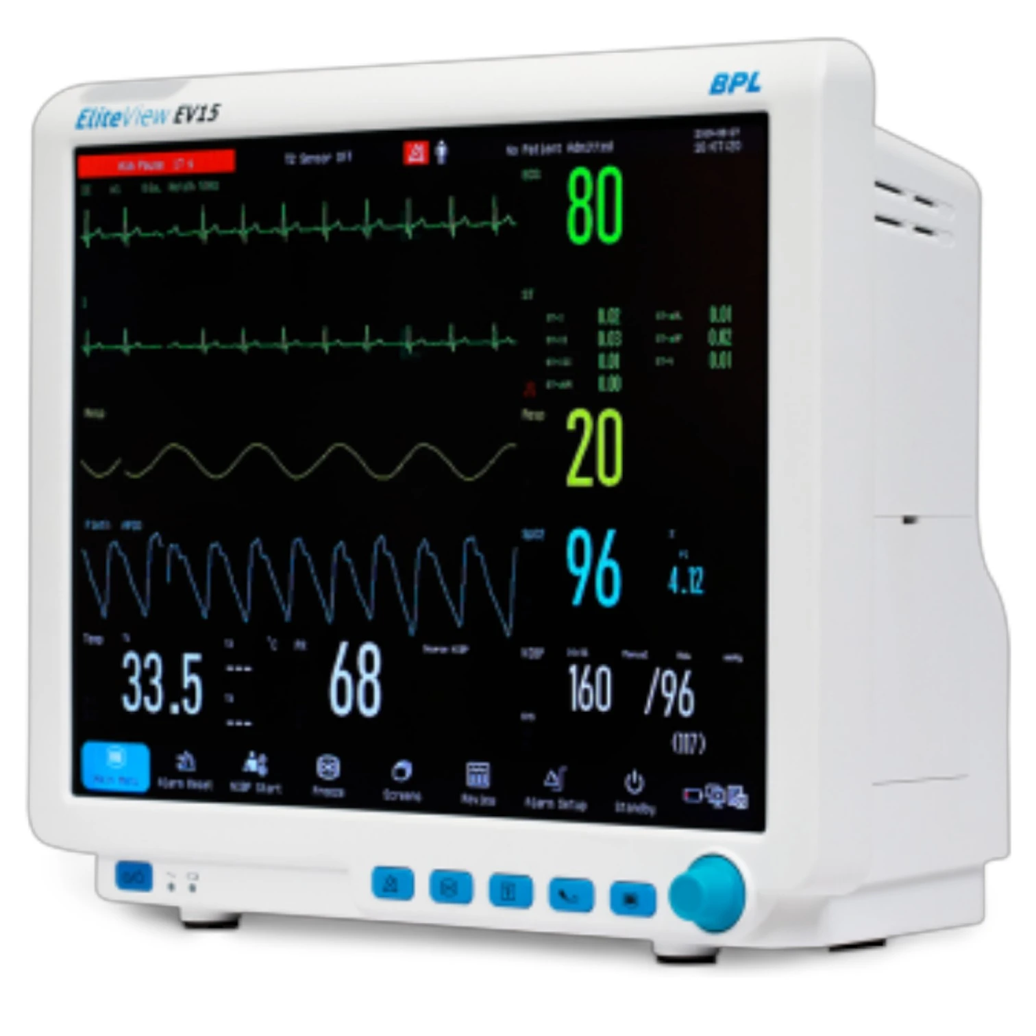 • 15-inch High resolution display – Touch screen • Standard Configuration - ECG, RESP, SPO2 (Masimo / Nellcor), NiBP, TEMP • Optional - Dual IBP, ETCO2 / AGM, Cardiac Output (Thermodilution), ICG, BIS, 12-lead ECG Monitoring, Thermal Recorder • Enhanced Connectivity - USB patient data output, Supports External printer, HL7, VGA for external display • Efficient memory storage (48 hrs Full disclosure) with Calculation Interface • High performance Li-ion Battery |