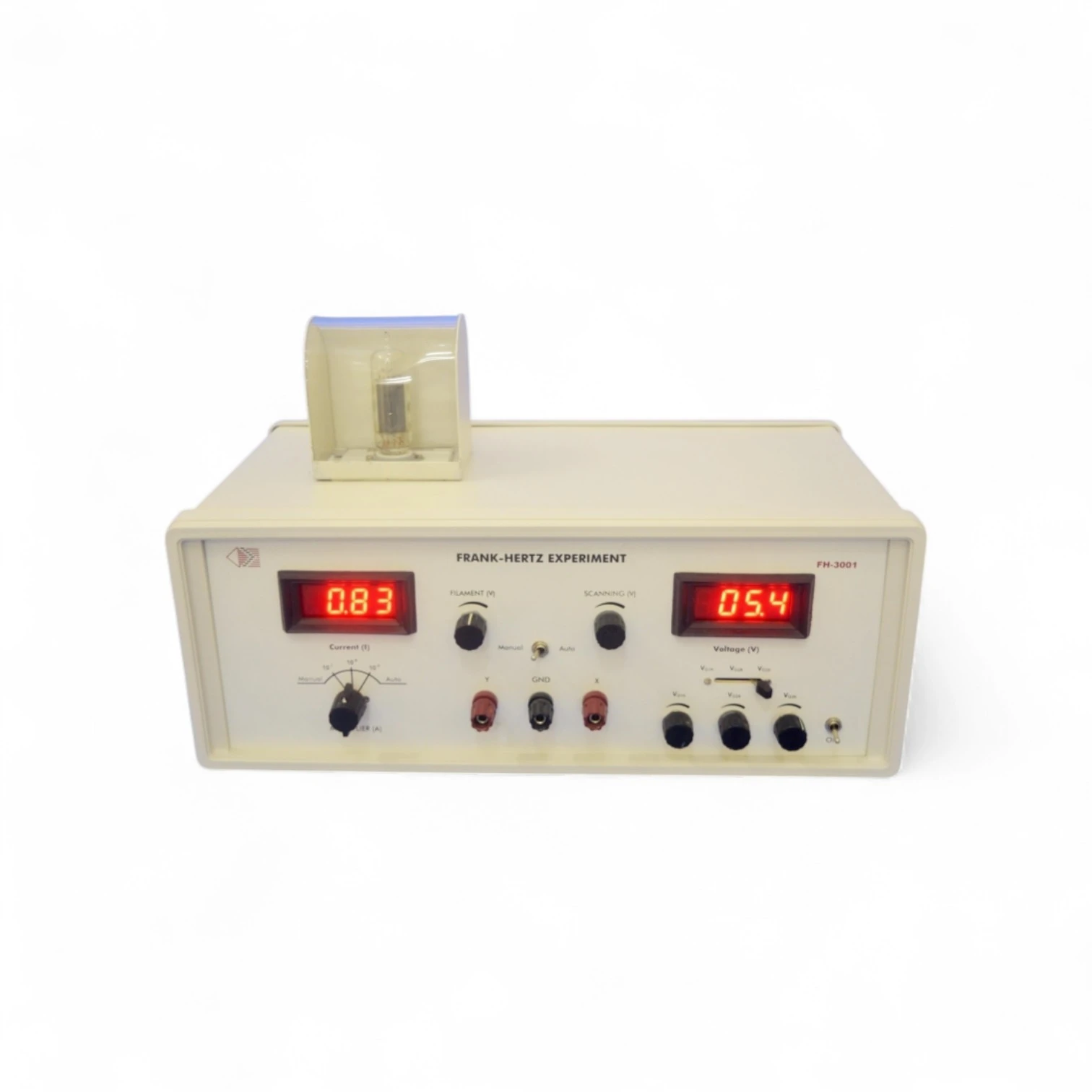 The Frank Hertz Experiment (FH - 3001) is a classic physics laboratory setup designed to demonstrate the quantized nature of energy levels in atoms. Based on the groundbreaking experiment by James Franck and Gustav Hertz, this apparatus allows users to observe the excitation of atomic electrons through electron collisions, providing direct evidence of discrete energy states. This experiment typically uses a gas-filled tube (commonly neon or mercury vapor) and a triode-type electron tube to illustrate how electrons lose energy in quantized amounts. The setup includes regulated power supplies, voltmeters, and ammeters for precise control and observation of the current-voltage characteristics. Key Features: