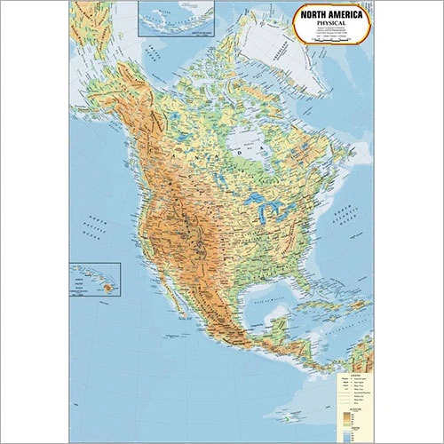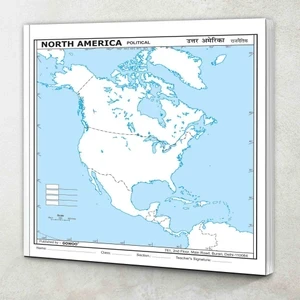 North America maps available in large and small sizes highlighting physical landforms and political boundaries, with desk outline and practice formats for structured geography learning. |