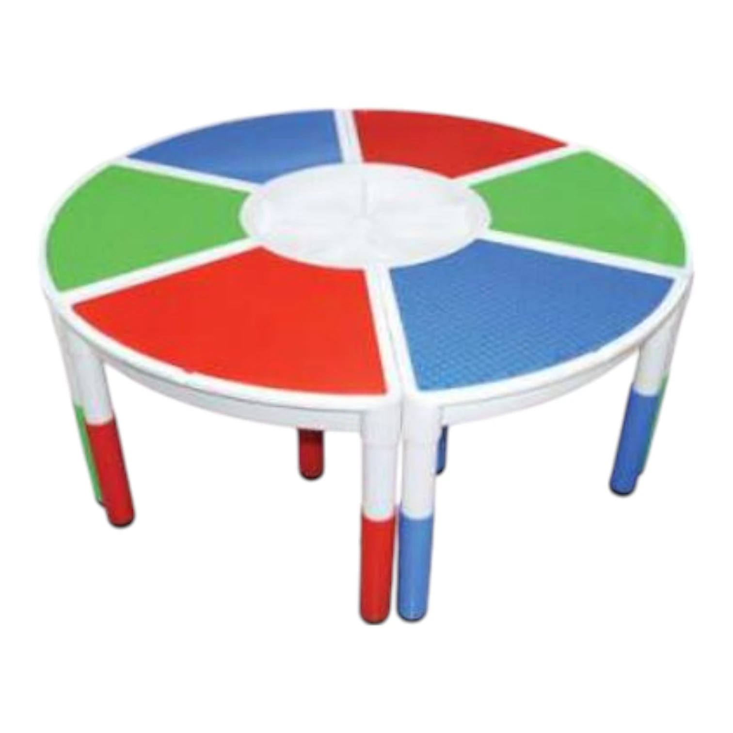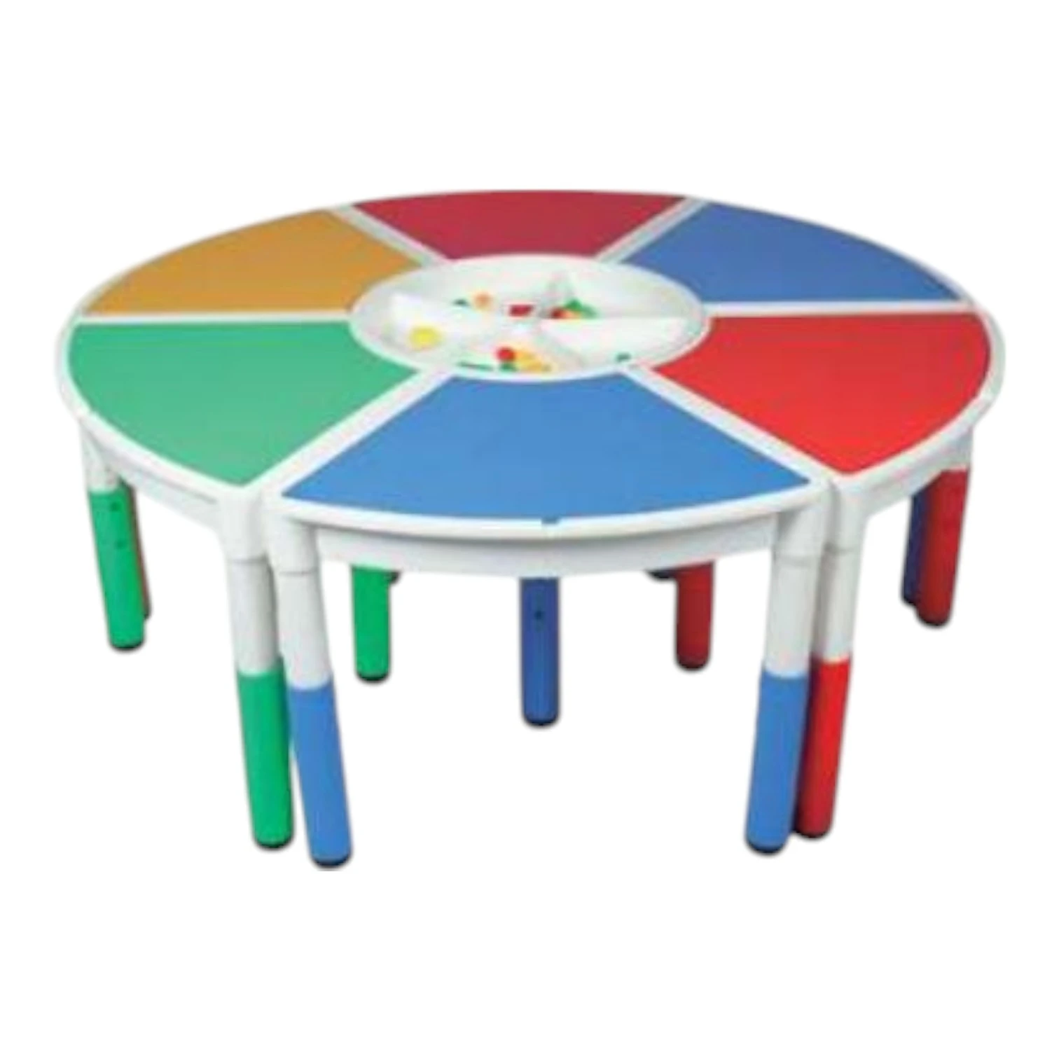 Dimension D50"xH18-22" Collaborative Moon-Segment Table Set for Young Learners Made from Safe, Durable, Easy-Maintain Plastic Spacious, Kid-Friendly Dimensions for Group Activities