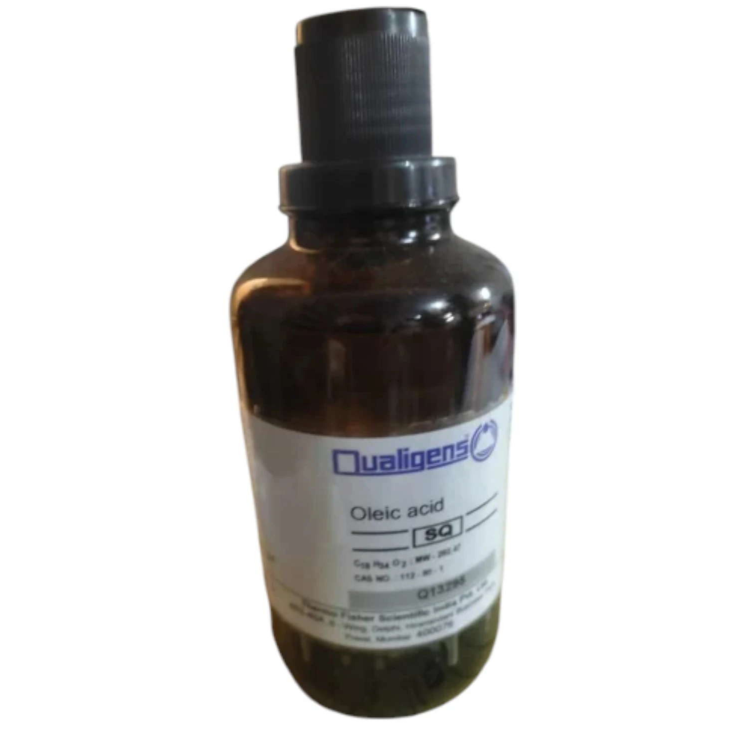 Oleic Acid (C₁₈H₃₄O₂) is a colorless to pale yellow liquid fatty acid widely used in cosmetics, pharmaceuticals, and chemical industries. It acts as an emollient, lubricant, and intermediate in the synthesis of soaps, detergents, and surfactants. |