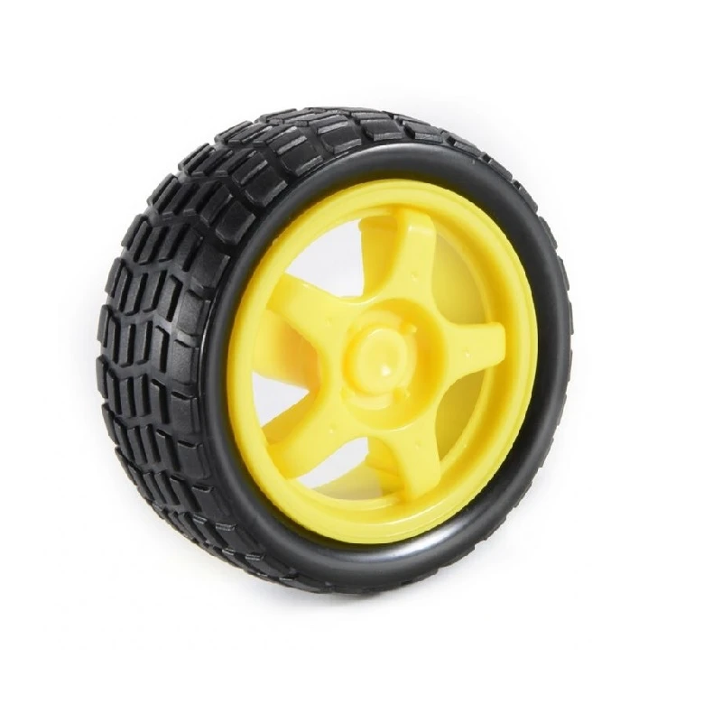 This 65 mm Plastic Robot Wheel is designed for BO-type DC motors, featuring a durable nylon rim and soft rubber tread for excellent traction. It includes a standard 6 mm axle hole with set-screw mount, making it easy to attach and ideal for mobile robots, smart car kits, and DIY robotics platforms. Lightweight and strong—perfect for Arduino and embedded projects. |