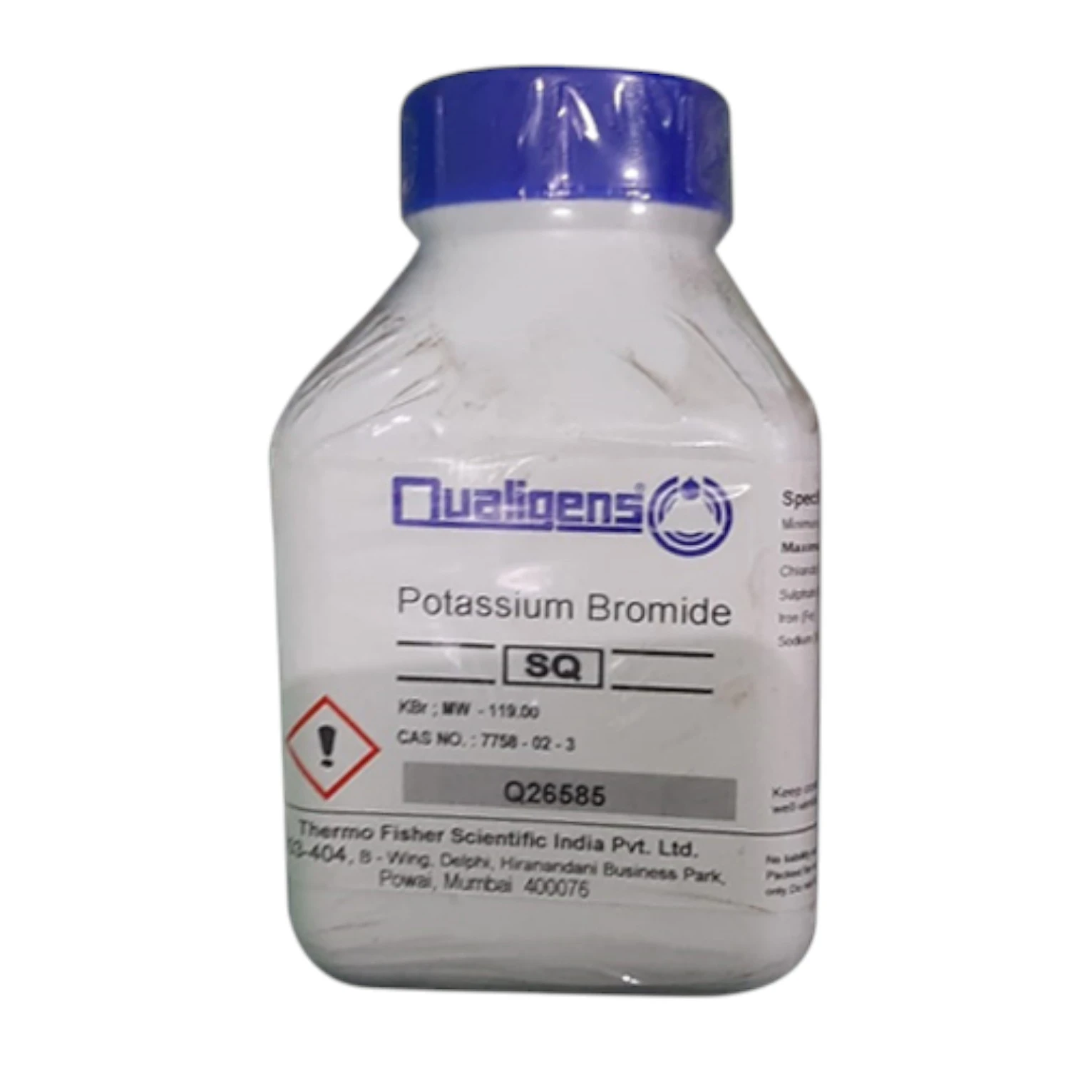 Potassium Bromide (KBr) is a high-purity inorganic salt widely used in pharmaceuticals, infrared spectroscopy (FTIR), photography, and analytical chemistry. Known for its excellent solubility, stability, and optical clarity, it serves as a reagent, electrolyte, and essential raw material in industrial and laboratory applications. |