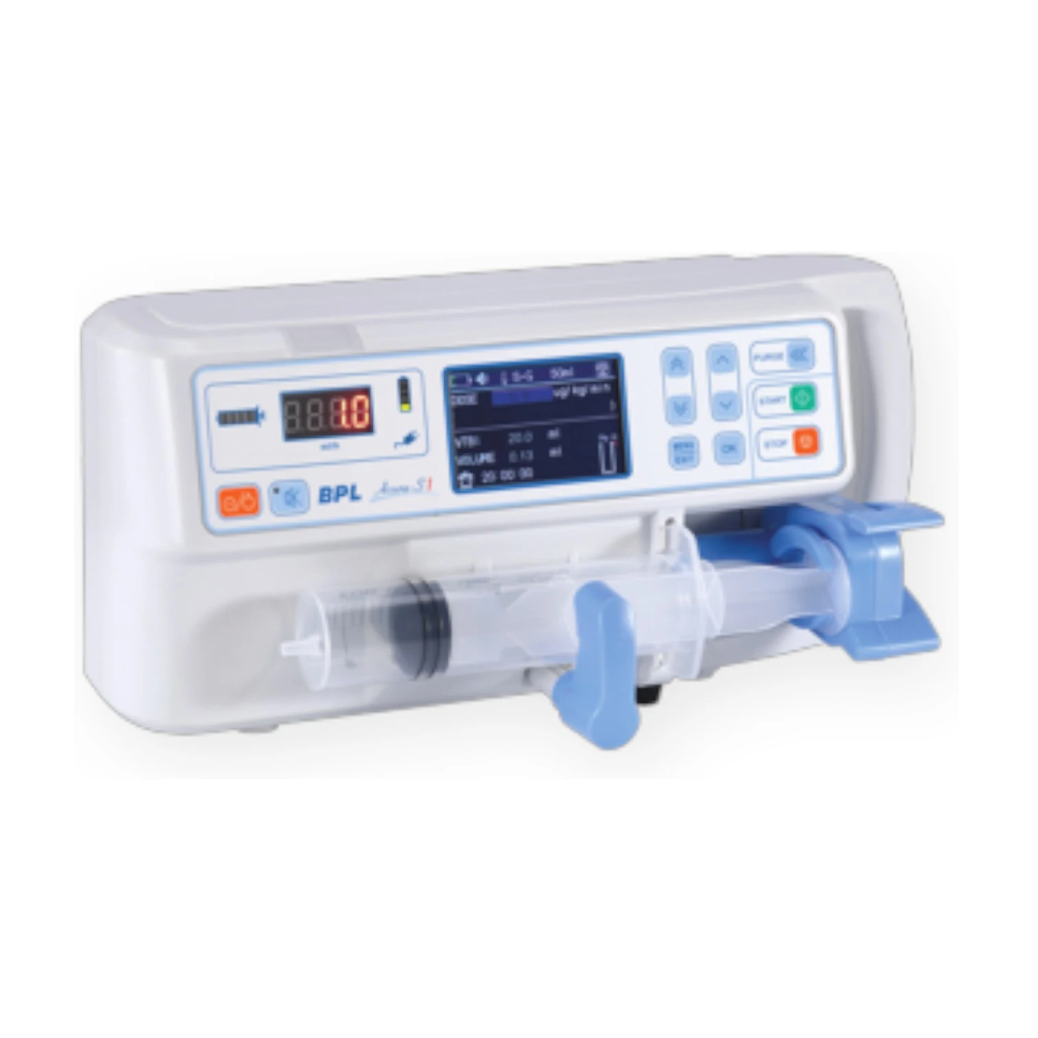 • Dual Display: 2.8-inch color LCD & LED for rate display • Compatible with all standard syringes: 5ml – 60ml • Infusion Modes: Rate Mode, Time Mode and Drug/Weight Mode • In-built Drug Library • Dual Bolus Modes: Manual & Automatic bolus • 3 level occlusion sensitivities setting (programmable) • 2000 history records and last configuration memory • Horizontal & Vertical fixation clamp |