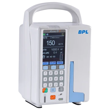 • 3.2-inch High definition color display • Infusion Modes: Rate Mode, Time Mode, Weight Mode, Stage Mode, Drip Rate Mode • In-built Drug Library • Dual Bolus Modes: Manual & Automatic bolus • 3 level of occlusion pressure (programmable) • Compatible with all brands of infusion sets with IV set library • 2000 history records and last configuration memory • Horizontal & Vertical fixation clamp |
