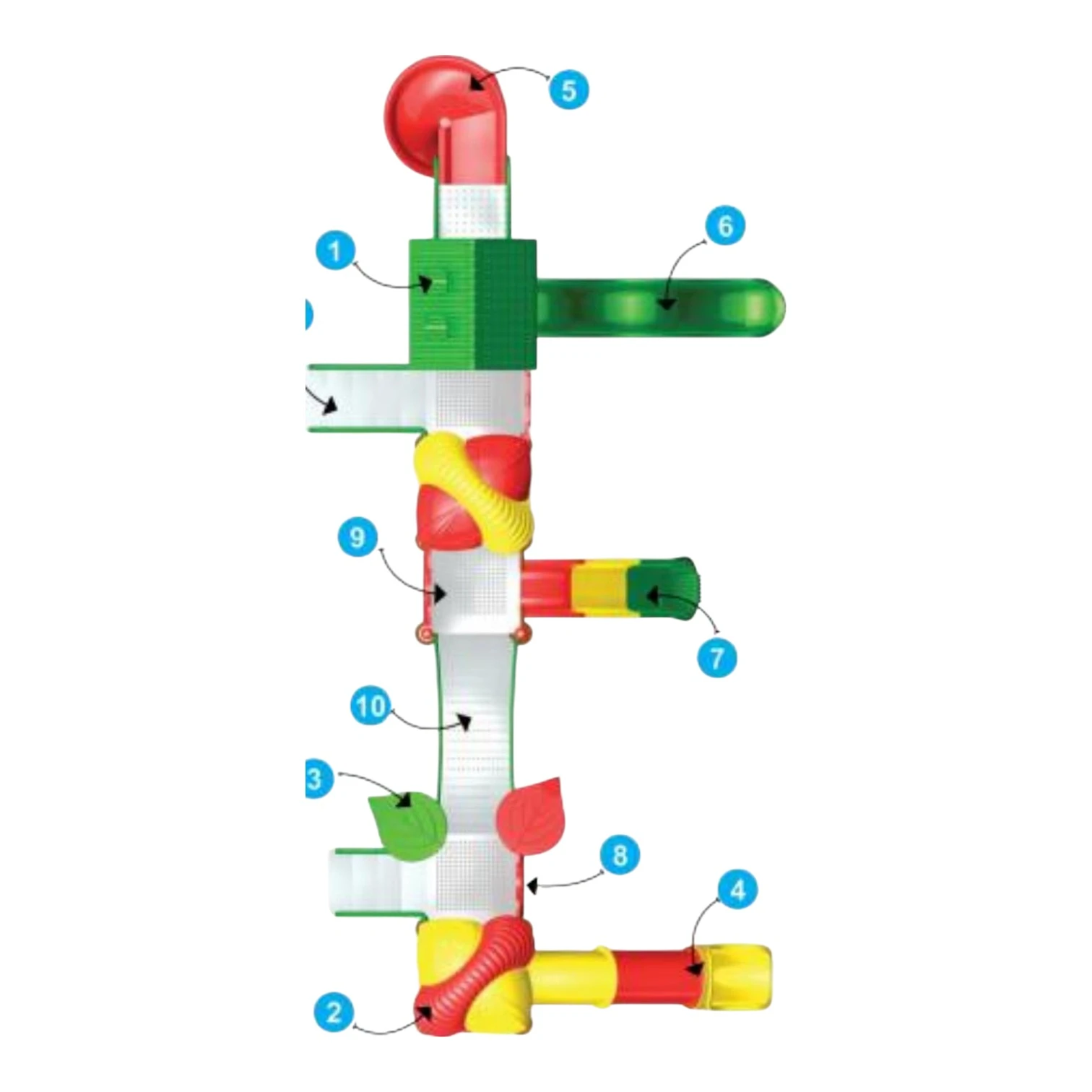 Adventure Max encourages climbing, sliding, exploring decks, and cooperative use. It enhances strength, coordination, vestibular awareness, spatial perception, and provides opportunities for shared imaginative play.