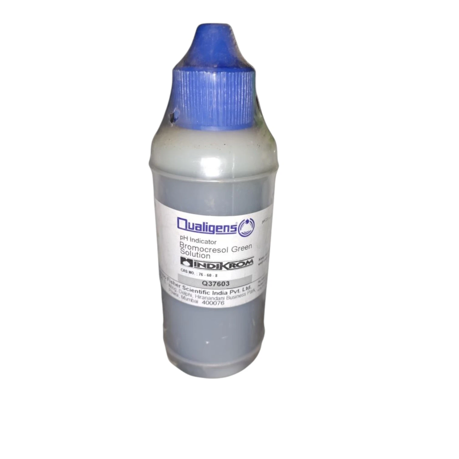 Bromo Cresol Green is a pH indicator dye commonly used in titrations and analytical chemistry. It shows a distinct color change from yellow to blue over the pH range 3.8 to 5.4, making it ideal for acid–base analyses and laboratory applications. |
