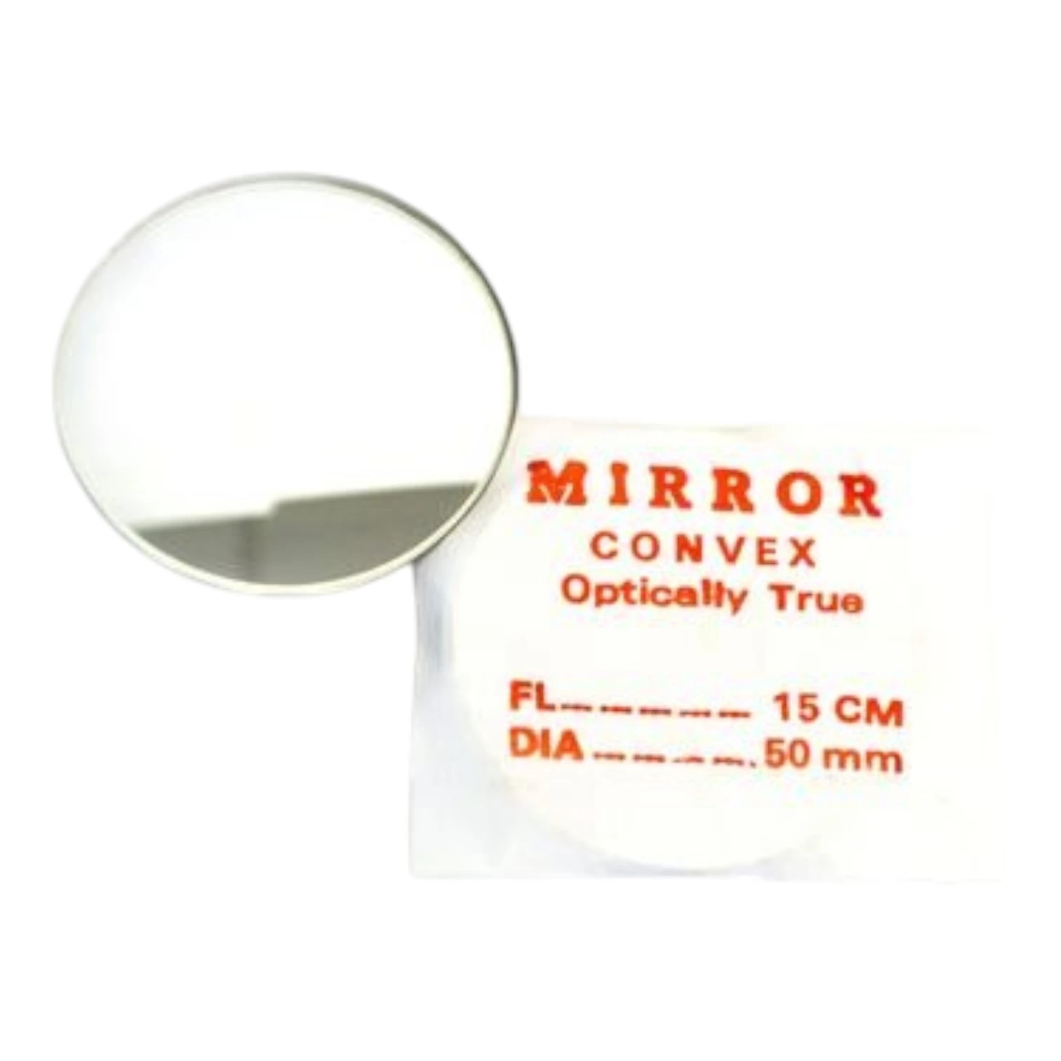 Shape: Outward curved, spherical surface Material: Glass with silver/aluminum reflective coating Focal Length: Positive (virtual focus) Mounting: Usually provided with a base or frame for easy lab setup Durability: Scratch-resistant, polished surface 📚 Applications: