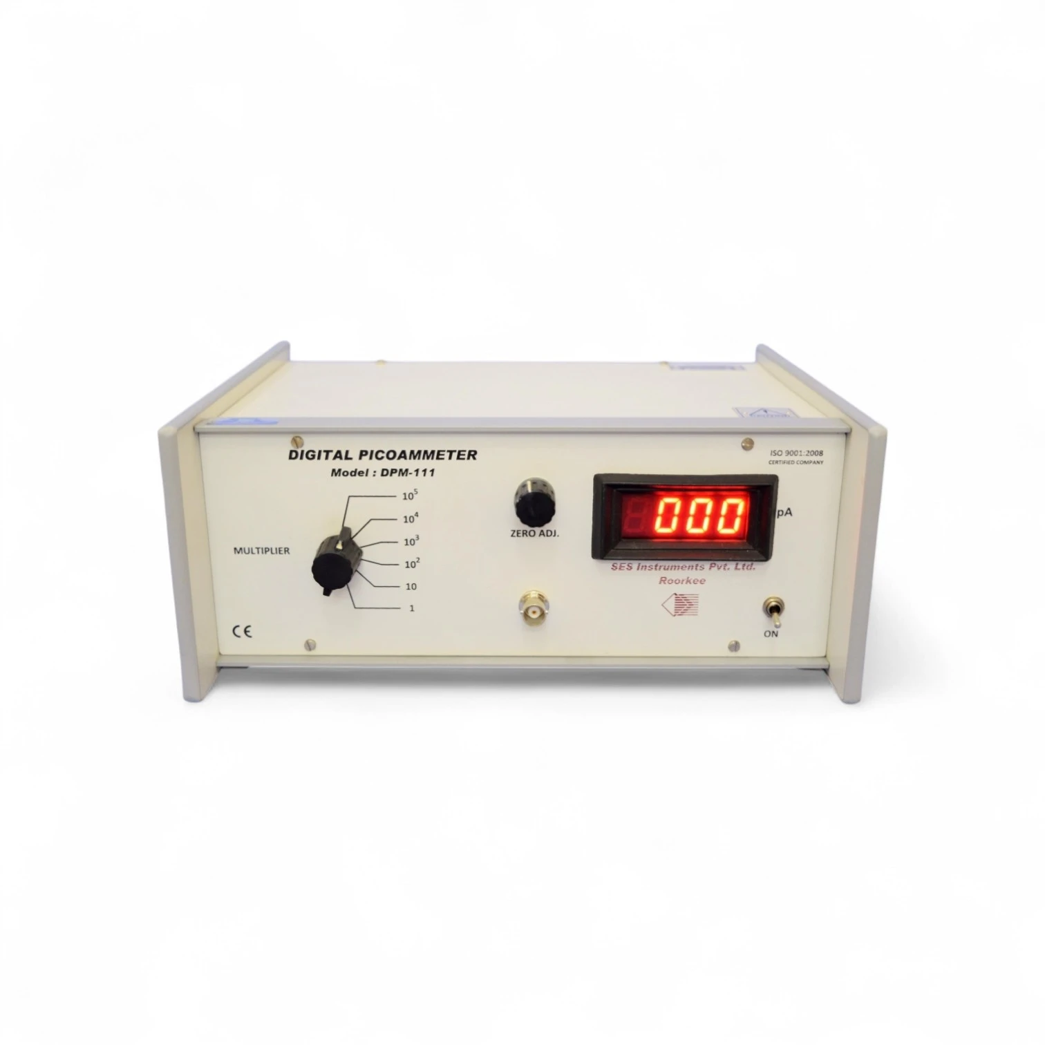 The DPM‑111 is a high-precision digital picoammeter designed for ultra-low DC current measurement across six decade ranges from 10⁻⁹ A to 10⁻⁴ A with 100 % over-ranging. It employs a low-noise AD549 FET‑input electrometer amplifier for extremely low input bias currents (≈ 50 fA), ensuring exceptional resolution and stability. With direct reading on a 3½‑digit LED display, the device automatically handles input polarity and boasts excellent linearity and drift performance. Configurable via USB interface and compatible with DACC / CAMM software for Windows-based logging. Built-in regulated power supply ensures stable operation under voltage variation. Perfect for measuring currents from photomultipliers or photometers, device leakage currents, FET gate currents, high-resistance sample testing, piezoelectric or pH electrode outputs, and air conductivity experiments. |