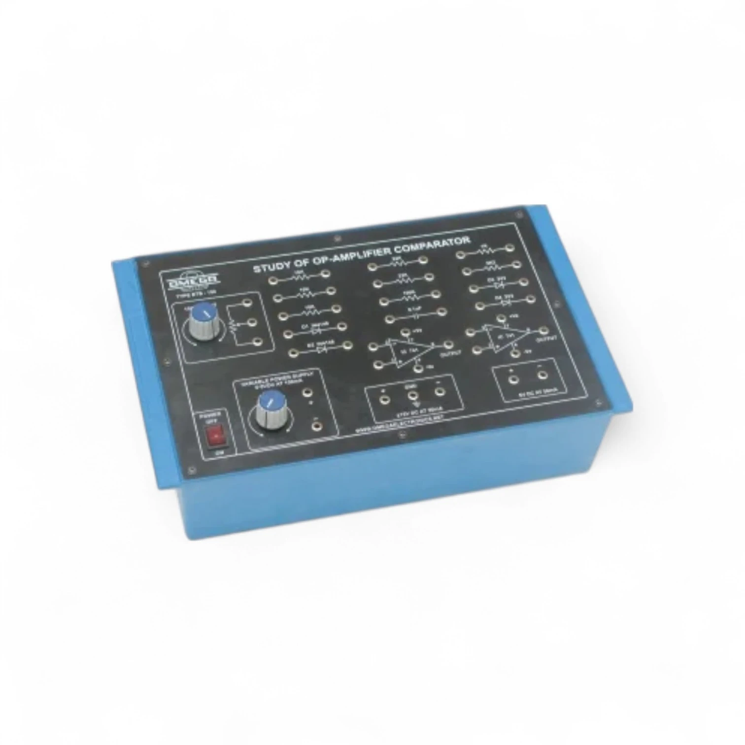 ETB-150 – Study of OP-AMP Comparator is a specialized educational trainer designed to demonstrate the functioning of an Operational Amplifier (OP-AMP) used as a Comparator. Comparators are essential in analog electronics for comparing voltage levels and generating digital outputs based on input conditions. This trainer includes a built-in power supply, test points, and component configurations that allow students to analyze both inverting and non-inverting comparator modes. It enables the observation of output waveforms when the OP-AMP compares different input voltages — a fundamental concept used in analog-to-digital converters, zero-crossing detectors, and Schmitt triggers. Key Features: