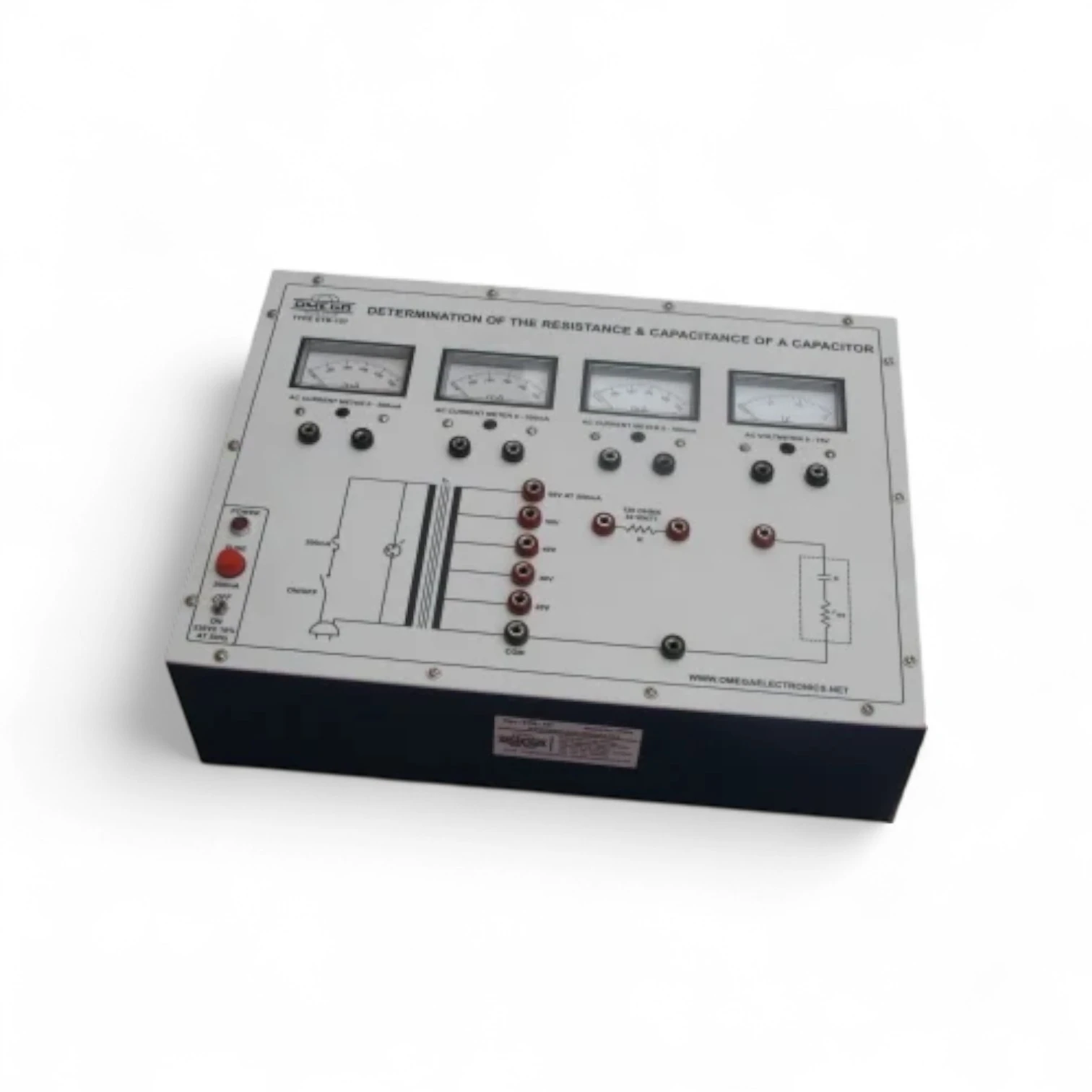 This trainer is designed for the experimental determination of both the resistance (leakage or ESR) and capacitance of a capacitor using practical methods. The setup allows learners to analyze real-world capacitor behavior, including phase angle, voltage-current relationships, and losses, by using 4 independent digital meters for precise monitoring of voltage, current, and phase variations. Equipped with a constant regulated (C.R.) power supply, the system simulates realistic conditions under which capacitor parameters can be accurately determined. This model is ideal for physics and electrical engineering labs focusing on AC circuit analysis and component characterization. Key Features: