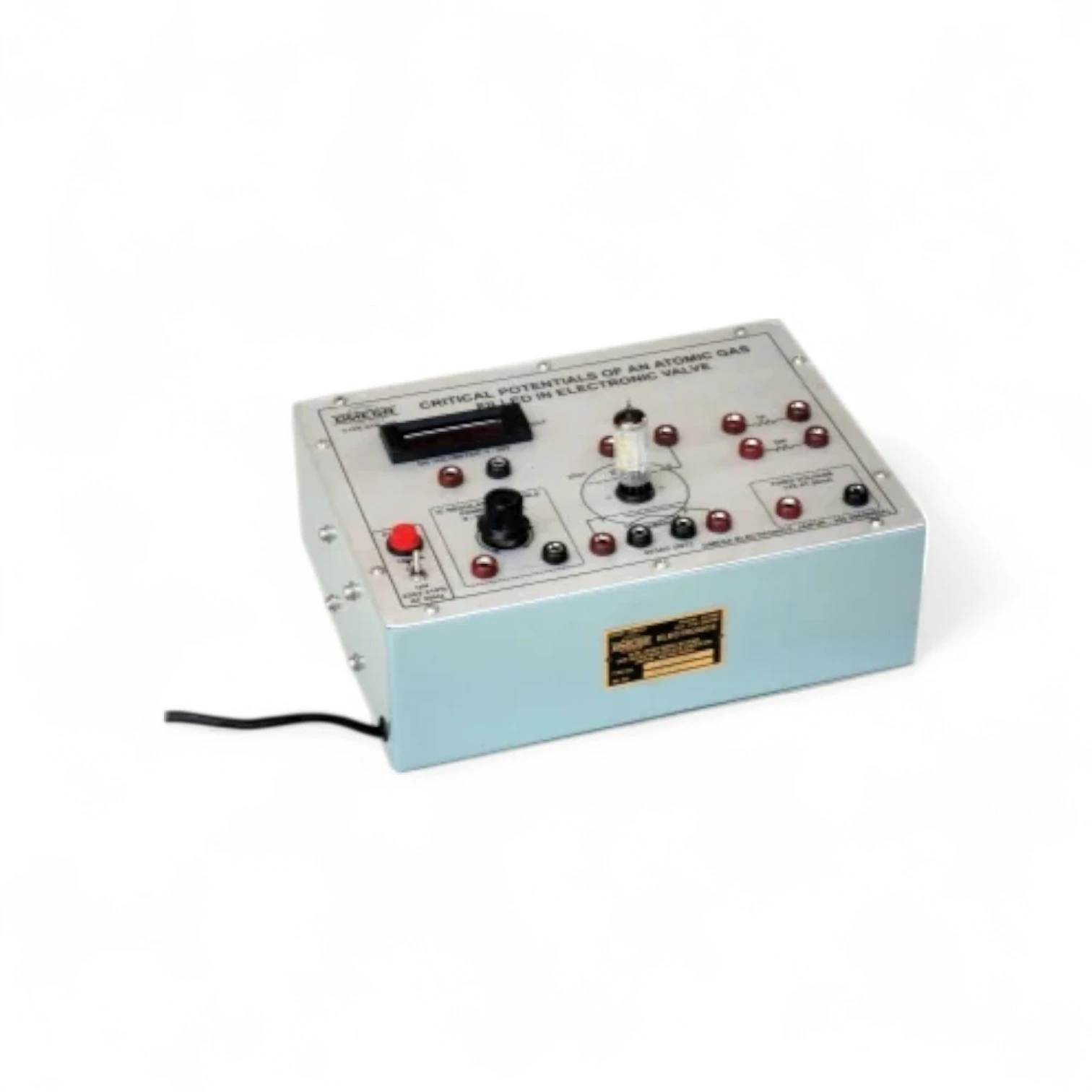 The ETB-202 Critical Potentials Trainer is a specialized physics and electronics lab apparatus designed to study the critical excitation and ionization potentials of an atomic gas (typically neon, helium, or mercury) enclosed in an electronic valve (gas-filled tube). It enables observation of energy levels at which electrons excite or ionize gas atoms — a fundamental concept in atomic physics and quantum theory. The model allows students to plot current vs. voltage characteristics, identifying points where energy transitions occur due to electron collisions. The setup is supported by a regulated power supply and a clearly structured circuit, allowing safe and accurate operation for classroom and research purposes. This experimental trainer is essential in physics and applied electronics labs for understanding electron impact phenomena, gas ionization, and atomic structure fundamentals. Key Features: