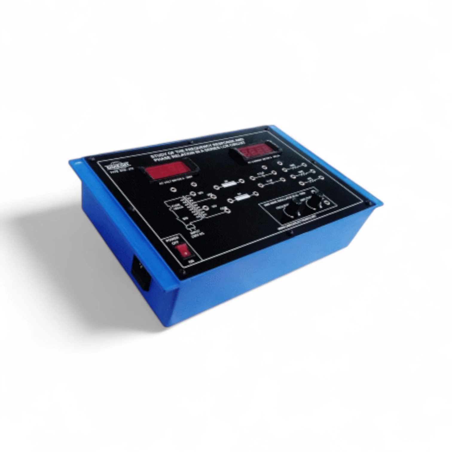 The ETB-279 is an advanced educational trainer designed for the detailed study of frequency response and phase relationships in a series RLC (Resistor–Inductor–Capacitor) circuit. This model is essential for understanding the principles of resonance, bandwidth, quality factor (Q), and the phase angle variation with frequency. It includes a built-in power supply, precisely selected components, and test points to analyze voltage across individual components and the total impedance of the circuit. Ideal for students to practically understand how an RLC series circuit behaves in AC applications. Key Features: