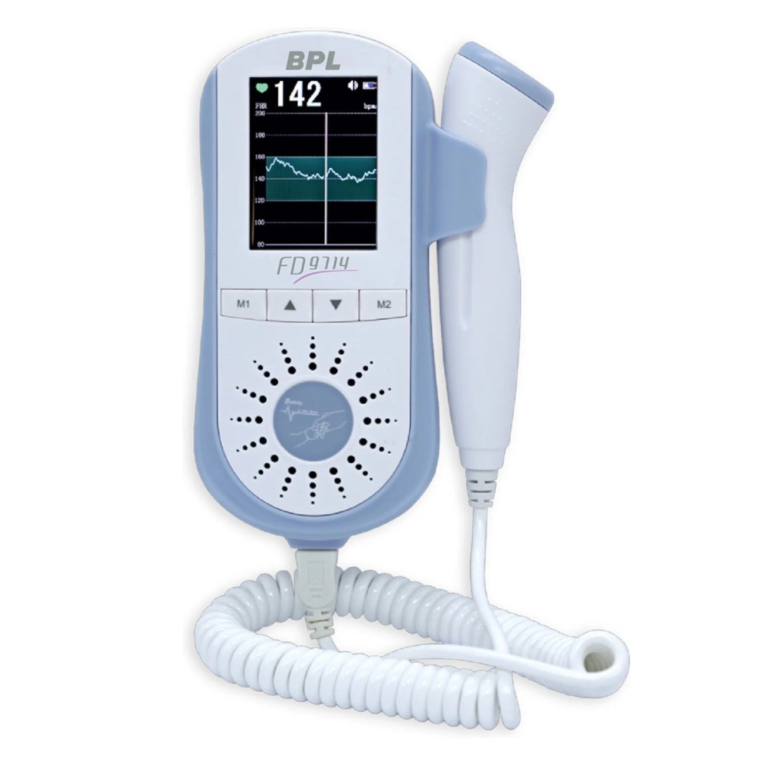 • 2-inch color display • 2.5MHz High Sensitivity Probe • Dual Display Mode: FHR Curve display (Waveform) & Big Font mode • Visual Alarm Indicator • IP22 Ingress Protection • In-built rechargeable Li-ion battery - Micro USB charger • In-built speaker and head-phone socket |