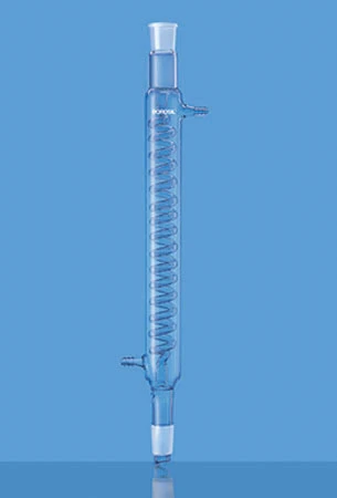 • Complies with IS 6052 • With Interchangeable Inner and Outer Joint • The coiled condensation tubes result in greater surface area for cooling • Designed with top standard taper outer and lower inner drip tip joint