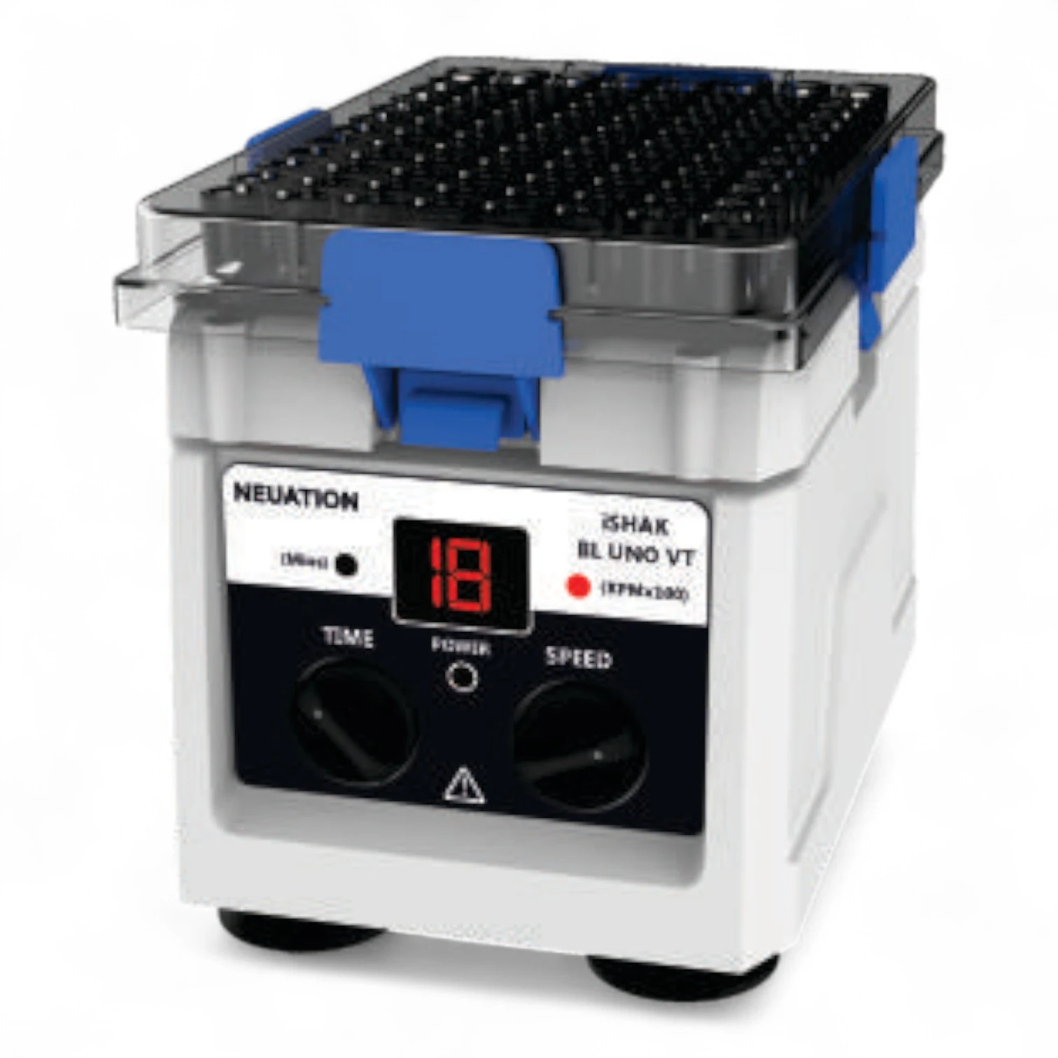 The iSHAK BL UNO VT is a compact and efficient personal microplate shaker designed for thorough and uniform mixing of microplate samples. It operates with a 2 mm orbital motion, ideal for 96- and 384-well plates, and is powered by a brushless DC motor for long-lasting, maintenance-free performance. The device offers variable speed control from 300 to 1800 RPM and supports a run time of 1 to 99 minutes or infinite mode. Features include a microprocessor-controlled interface, digital display, and last run memory function for consistent and repeatable tests. With a low voltage design, rubber O-ring for firm plate grip, and CE certification, the iSHAK BL UNO VT is perfect for space-constrained clinical and diagnostic lab. |