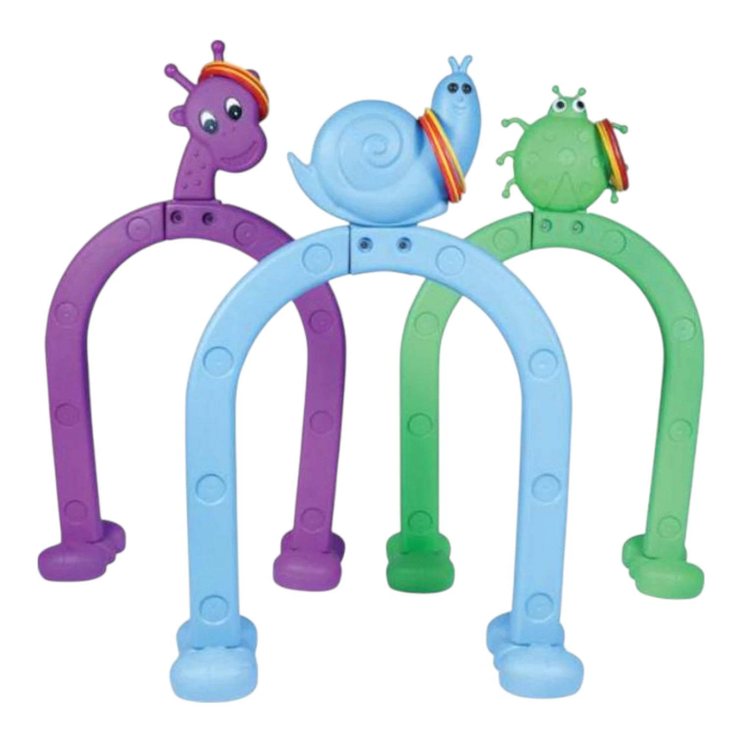 Set of three Girrafe: L9" xW24" xH37.5" Ladybug: L9" xW24" xH35.5" Snail: L9" xW24" xH36.5" About Product:A trio of molded, non-toxic plastic “step-in” activity pieces featuring child-friendly designs like giraffe, ladybug, and snail Age range:Ideal for children aged 2–6 years, developed for preschool indoor fun or personal play Material & Safety:Made from BPA‑free, non-toxic plastic, safe for young users Purpose:Boosts physical coordination, balance, and imaginative play through stepping and interactive games.