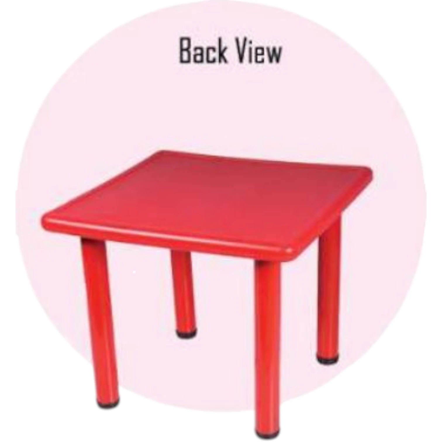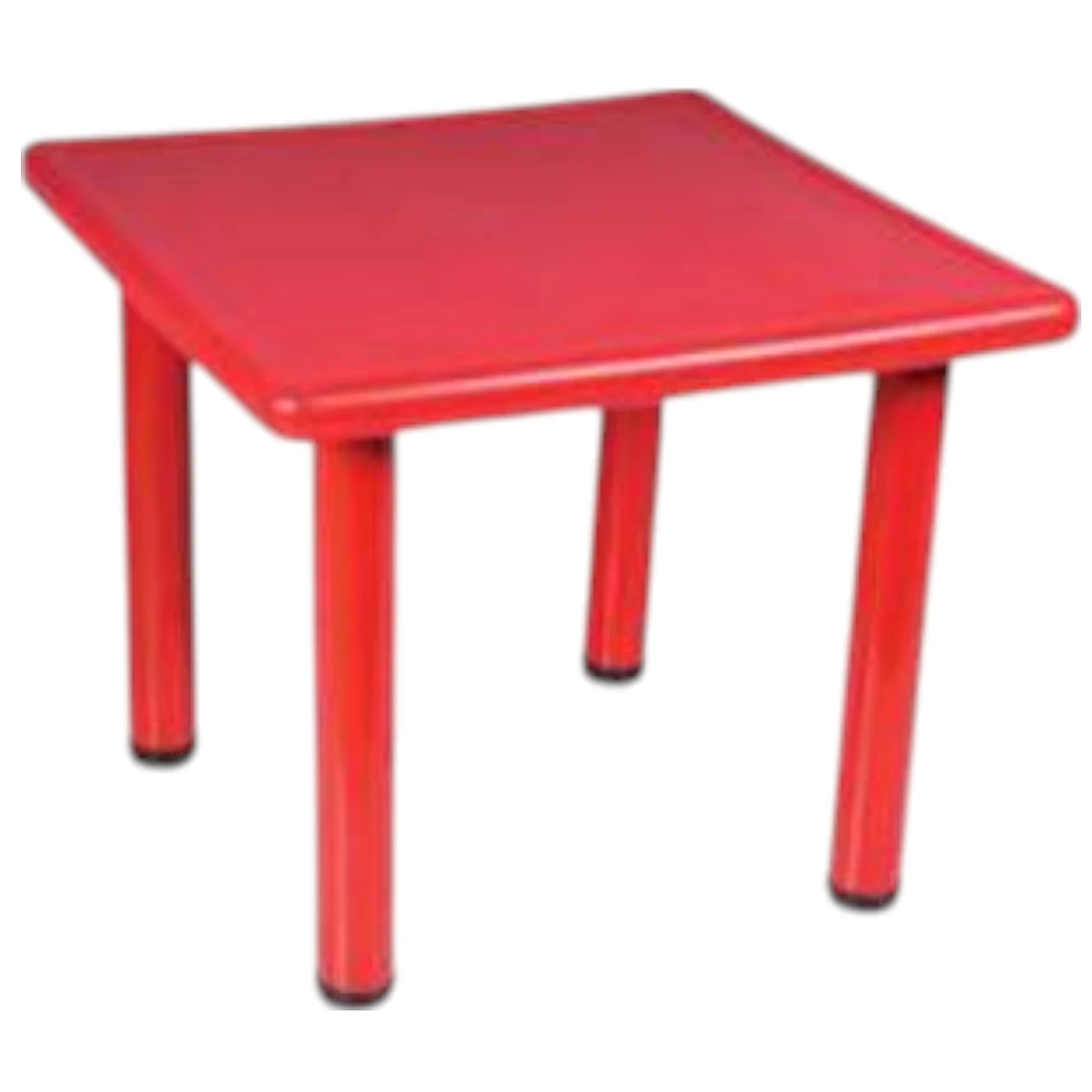 Dimensions L24"xW24"xH20" Overview of Square Table PSF-1113 Meticulously crafted from reinforced, rotomolded plastic, it stands up to active classroom use while resisting wear, scratches, and fading. The vibrant color options—available in red, blue, yellow, and green—bring energy and life to playful learning settings. Thoughtfully designed for both safety and longevity, the table offers smooth rounded edges and a subtle height-adjust feature—adjustable by up to 3 cm—to adapt to growing children and dynamic layouts.