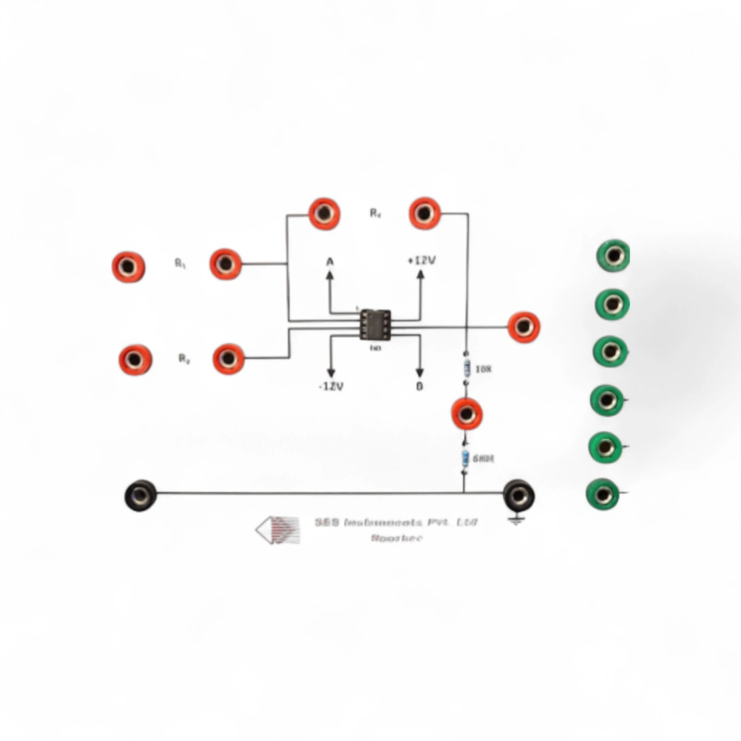 The Study of Basic Operational Amplifier (741-01) is a specialized trainer kit designed to introduce students to the fundamental principles and configurations of the IC 741 operational amplifier. This kit enables practical understanding of the linear and non-linear applications of op-amps, a critical building block in analog electronics. The setup allows learners to construct and analyze various configurations such as: