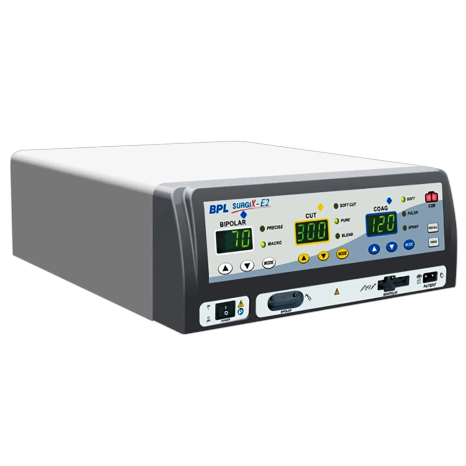• 300 watts - One Monopolar & One Bipolar • 3 Monopolar Cut Modes: Soft Cut, Pure & Blend cut; Max Power - 300 W • 3 Monopolar Coag Modes: Soft, Fulgurate & Spray Coag; Max Power - 120 W • 2 Bipolar Modes: Precise & Macro Mode; Max Power - 70 W • Advanced Feedback Technology maintains set power over different range of tissue |
