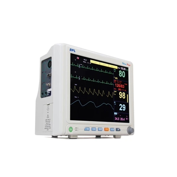 • 12.1-inch High resolution display – optional Touch screen • Standard Configuration - ECG, RESP, SPO2 (Masimo / Nellcor / Digital), NiBP, TEMP • Optional Parameters - Dual IBP, ETCO2, AGM, ICG, Thermal Recorder • Optional Connectivity - HL7 output, VGA for external display • The device calculates drug dose & OXY-CRG feature • Efficient memory storage |