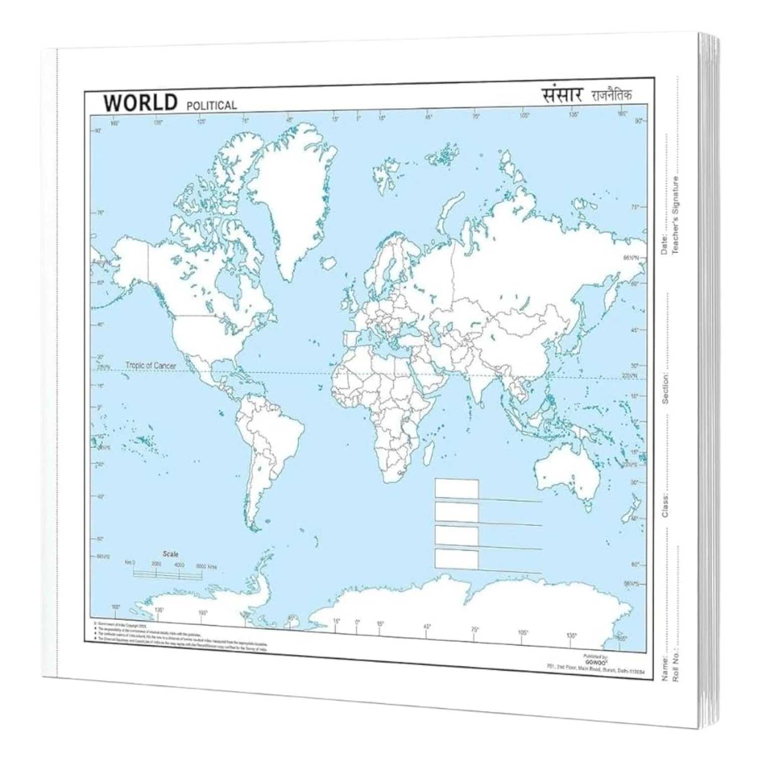 World maps available in large, medium and small sizes featuring physical and political details, desk outline and practice formats, ideal for classrooms, exams, and reference use. |