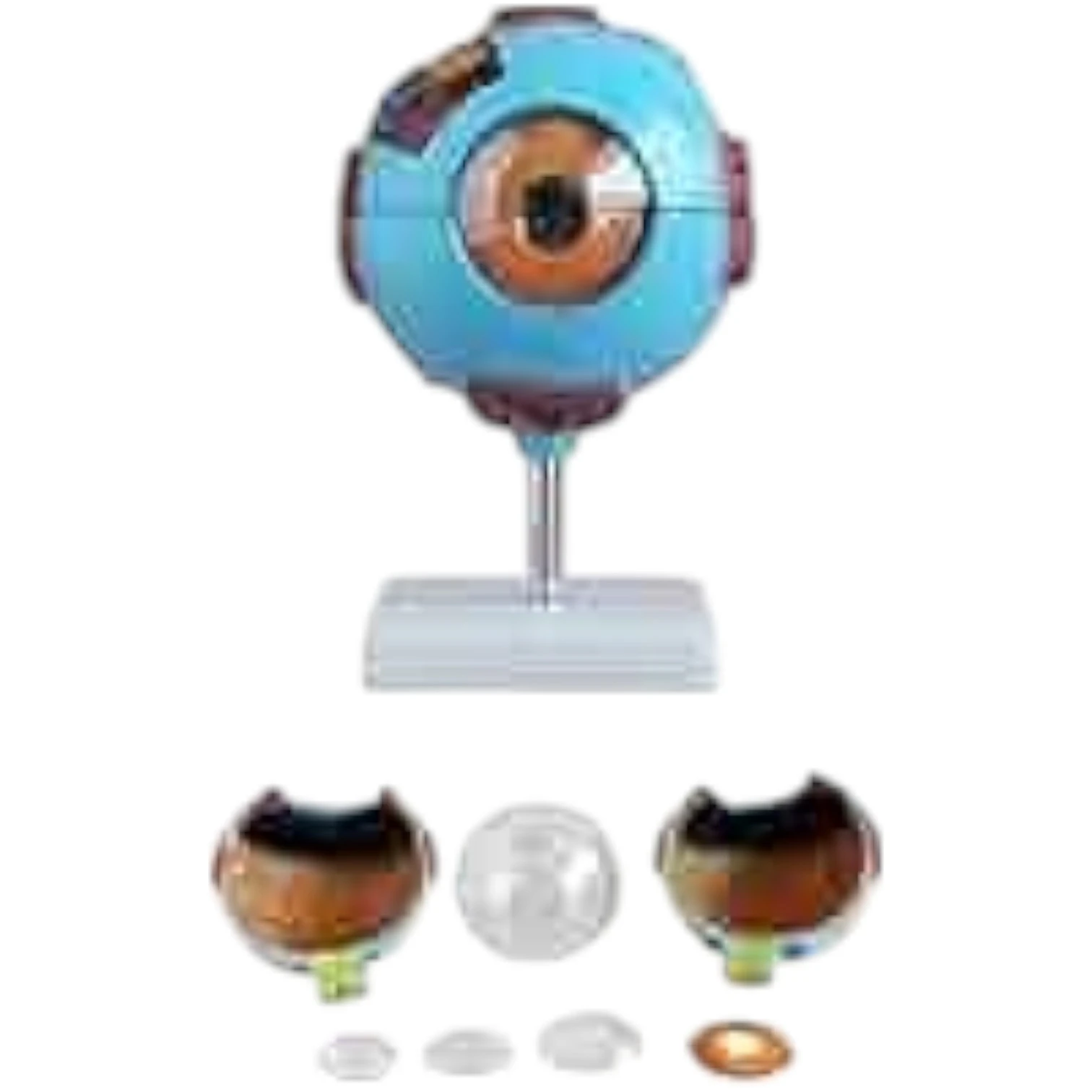 • Size: 15.5cm. Made of PVC. Mounted on a plastic stand. 6 times enlarged Model. The different parts of the eyeball model are detachable. • Tunica external: showing cornea and sclera with attachments of ocular muscles and optic nerve. • Tunica media: showing the iris, the ciliary body and the chorioid. Tunica interna is retina. • Refraction media: showing the lens and the vitreous body. |