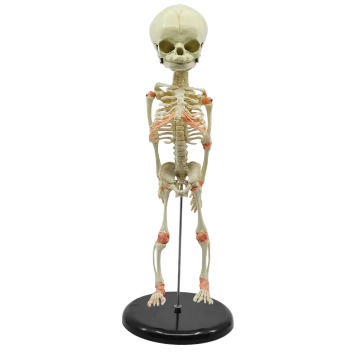 • Life size • Made of PVC • Human articulated fetal skeleton model. • 32 weeks fetal skeleton structure shown. • Skull & legs are detachable. • Lower jaw is spring loaded enabling it to open and close. • Model is rigid with stand & base. • Key card / Manual provided. |