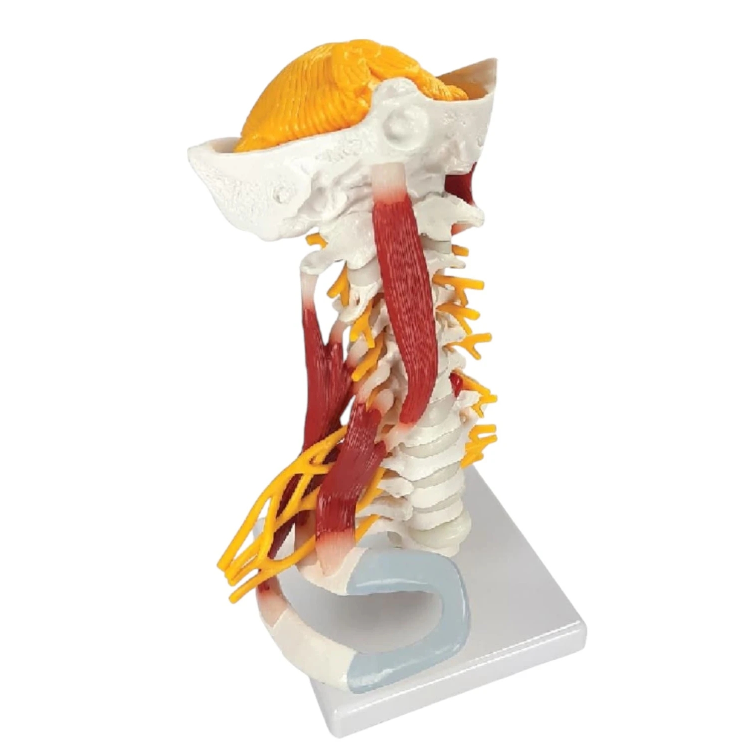 •Life Size • Made of PVC • Mounted on stand. •It features the entire cervical vertebrae with muscular anatomy, nerves, and a portion of the clavicle. This full size muscled cervical vertebrae model also features a soft replica of the cerebellum, detailed occipital bone plate, atlas and axis and spinal nerves throughout. •This model also includes a right side brachial plexus. Muscular anatomy includes the suboccipital triangle, longus capitis, levator scapulae, scalenus medius posterior and anterior. The right first and second ribs are also featured and include cartilage. • Ideal for a variety of disciplines, including chiropractic study, surgical reference, and patient education and consulation. • The soft material of the nerves and muscles bring lifelike quality to the model and help explain topics such as neck pain, nerve damage, muscle strain, and misalignment of the cervical vertebrae. • Key card / Manual provided. |