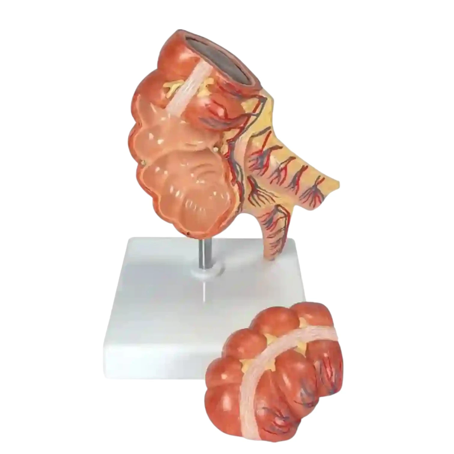 • Size : 1.5 times enlarged • Made of PVC • Dissectable in 2 parts • Mounted on display stand • Caecum, appendix and its attachment to the large intestine demonstrated. • Model can be opened to depict folds & textureof internal anatomy. • Removable portion secured with magnets. • Key card / Manual provided. |