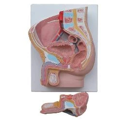 Size 30x30x10 cm • Made of HSP • Total 22 parts labeled. • Sagittal section of female pelvis in 2 parts. • Model shows all important organs of female pelvis. • Key card / Manual provided. |
