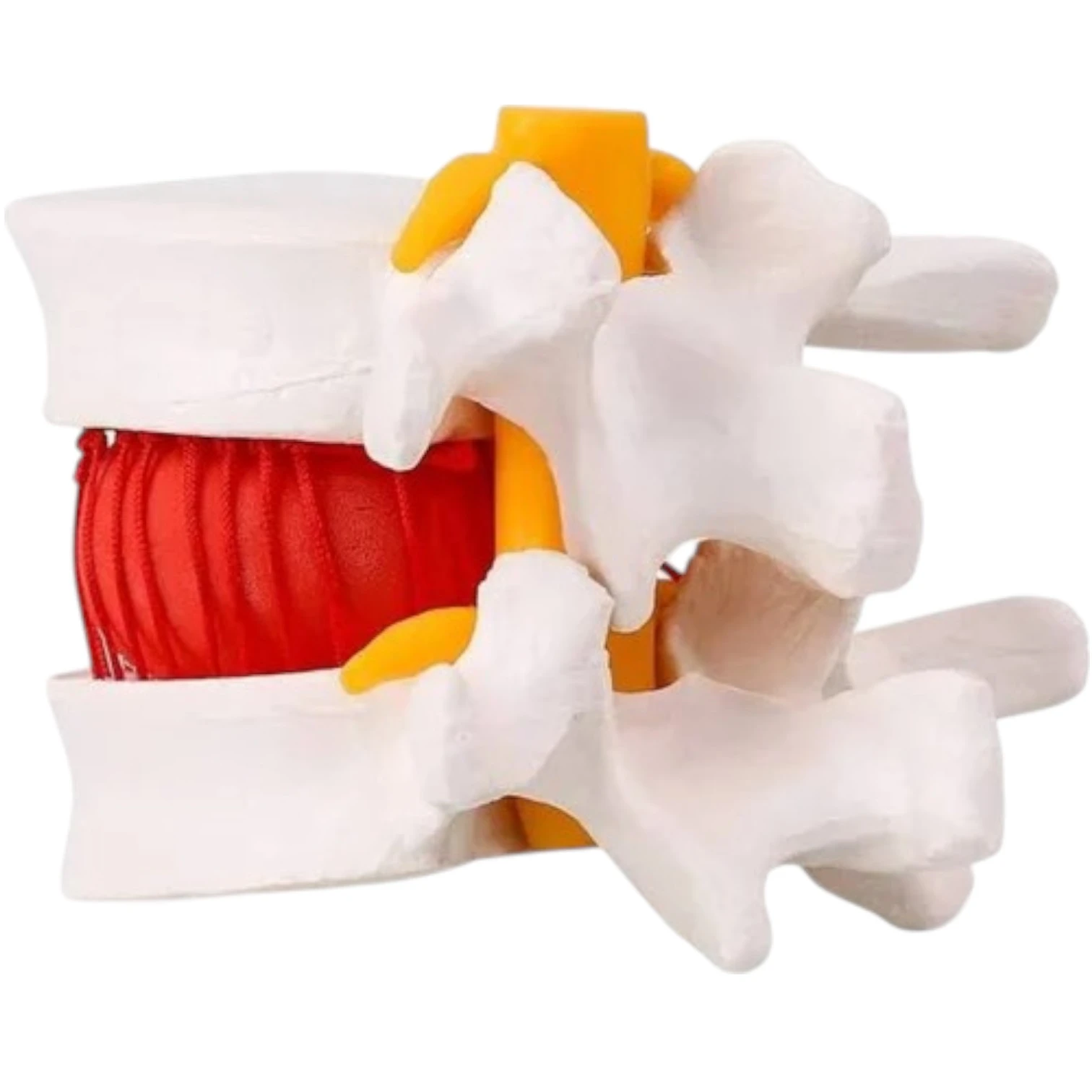 • Life size • Made of PVC • It demonstrates the damage mechanism of lumbar disc herniation. • It demonstrates how the intervertebral disc is dislodged when bending t h e v e r t e b r a e a n d reproduces what happens to the human vertebrae when bending or twisting the body in real life. • The String around the blood ball is made manually which is firm and durable. • This model consists of two vertebrae with a flexible disc, spinal cord and nerves. • Key card / Manual provided. |