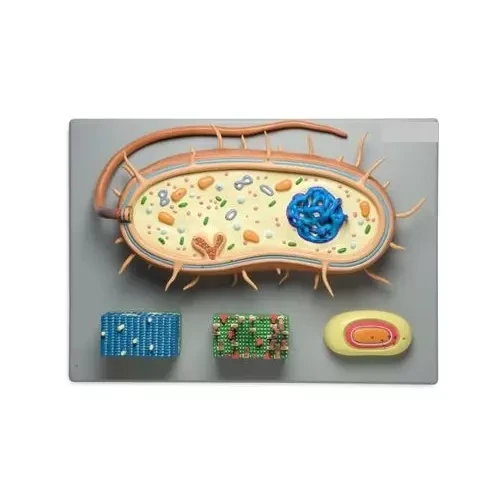 • Model is greatly enlarged bacterium model depicting anatomical complexity of a general prokaryotic cell. • The model is a set of 4 models including block models of the cell wall of gram positive and gram negative bacteria, opened bacterial spore showing spore coat & internal structures and main bacterium. • Mounted on sturdy wooden base. • Size : 55x40x9.5 cm. |